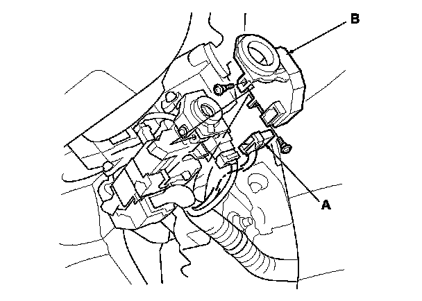 2. Disconnect the 7P connector (A) from the immobilizer-keyless control unit (B).