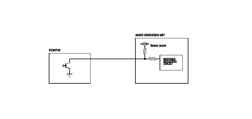 The audio-navigation unit calculates the vehicle position (the driving direction and the current position) by receiving the directional change signals from the yaw rate sensor and the travel distance signals from vehicle speed pulse (VSP) signal of the ECM/PCM.