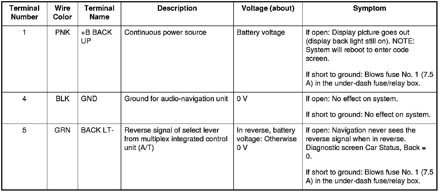 Audio-navigation Unit Inputs and Outputs for Connector D (12P)
