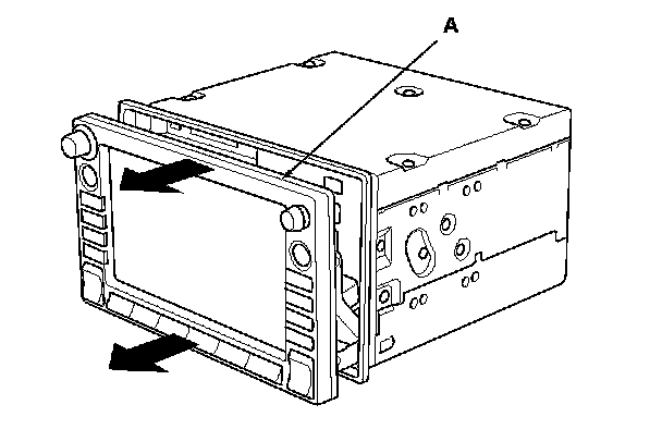 1. Remove the audio-navigation unit from the vehicle. Audio-Navigation Unit Removal/Installation (With Navigation)