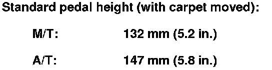 3. Pull back the carpet and find the cutout (B) in the insulation. Measure the pedal height (C) at the center of the pedal pad (D) to the floor without the insulation.