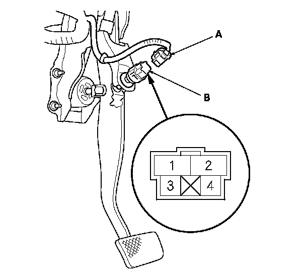 1. Disconnect the 4P connector (A) from the brake pedal position switch (B).