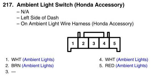 View 217 - Ambient Light Switch Connector View (Honda Accessory)