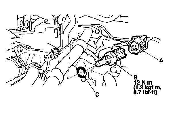 6. Install the parts in the reverse order of removal with a new O-ring (C), then refill the radiator with engine coolant. Service and Repair