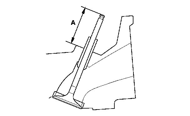 8. Insert the intake and exhaust valves in the head, and measure valve stem installed height (A).