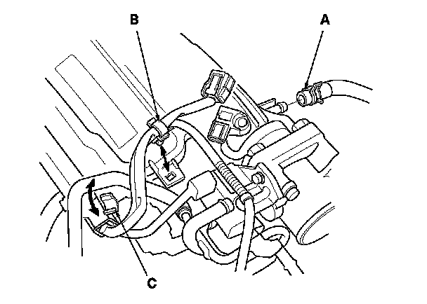 5. Remove the water bypass hose from the clamp (C).