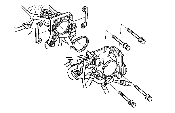 6. Remove the throttle body without disconnecting the water bypass hoses.