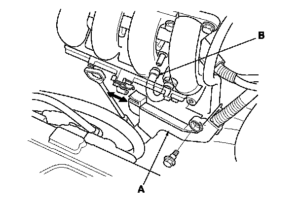 5. Install the PCV hose (A) and harness holder (B).