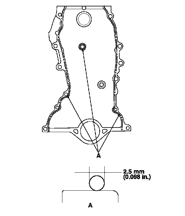 - Apply liquid gasket about 2.5 mm (0.098 in.) diameter bead along the broken line (A).