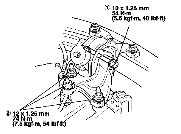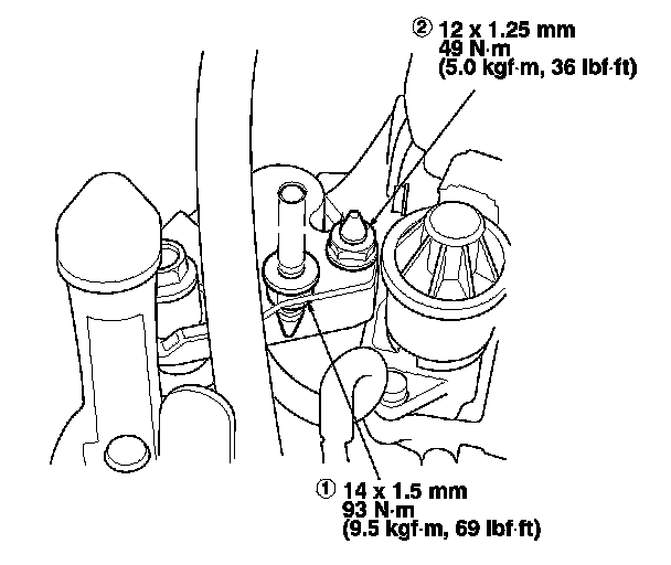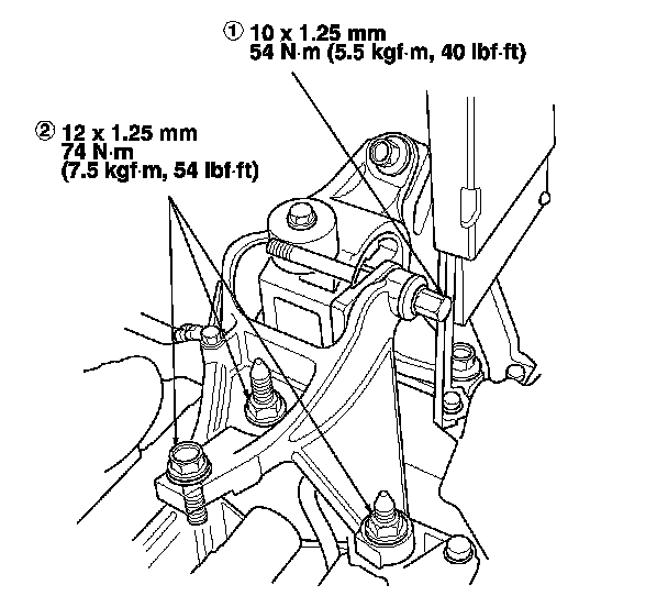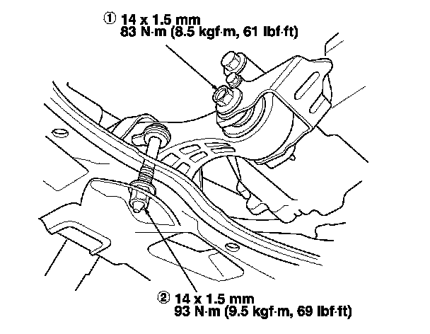 28. Tighten the torque rod mounting bolt and nut in the numbered sequence shown.