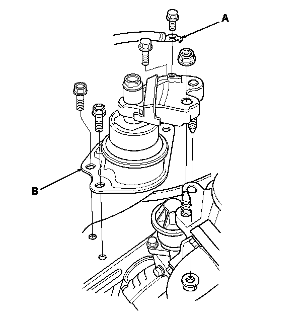 11. Remove the ground cable (A), then remove the side engine mount/bracket assembly (B).