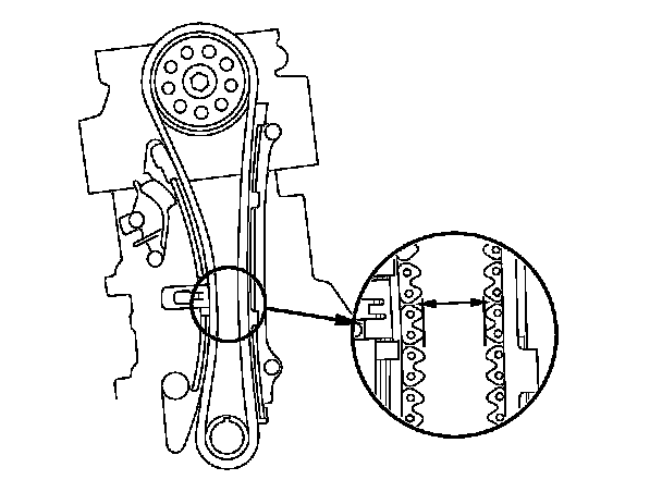 13. Measure the cam chain separation. If the distance is less than the service limit, replace the cam chain and cam chain tensioner.