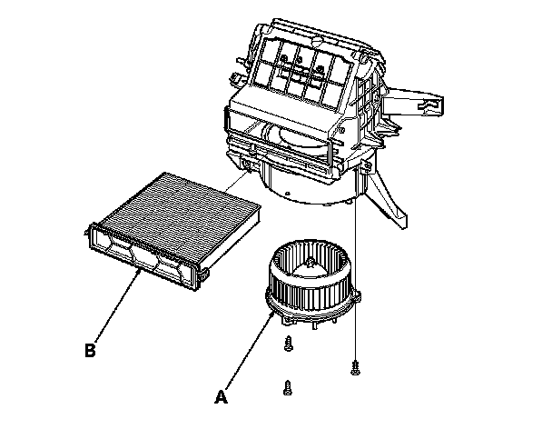 - The blower motor (A) and the dust and pollen filter (B) can be placed without removing the blower unit.