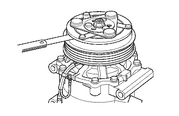 6. Remove the armature plate, Service and Repair and inspect the armature plate and pulley friction surfaces for wear. If there is excessive wear, roughness, or scoring, replace the clutch set.