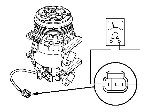 4. Check for continuity between A/C compressor clutch connector terminals No. 1 and No. 3. If there is no continuity, replace the thermal protector. A/C Compressor Thermal Protector Replacement (With A/C)