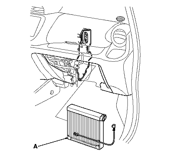 7. Carefully pull out the evaporator core (A).