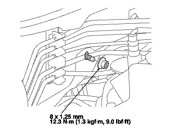 5. Remove the mounting nut from the heater unit. Take care not to damage or bend the fuel lines or the brake lines.