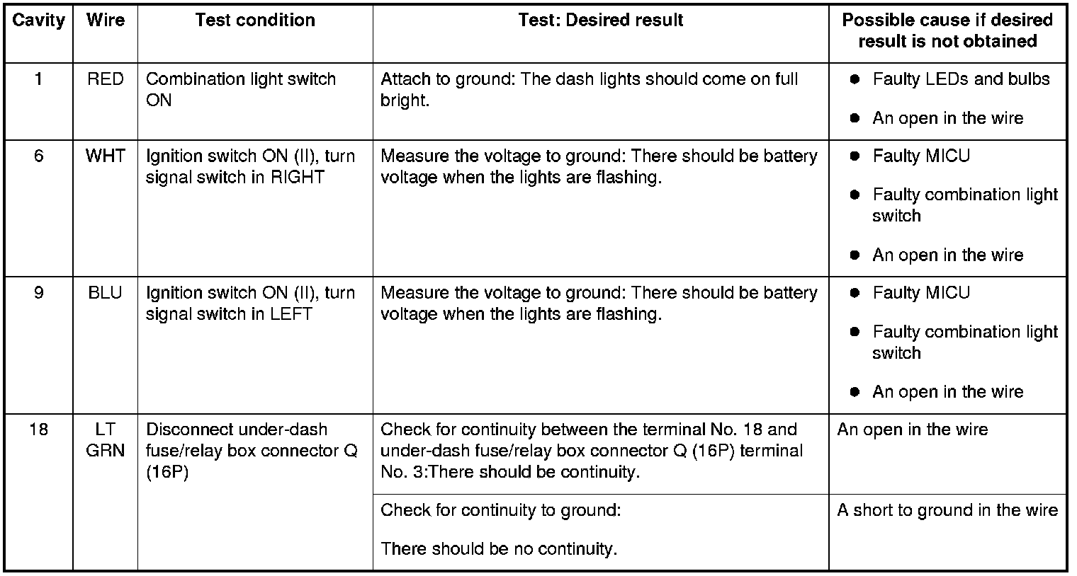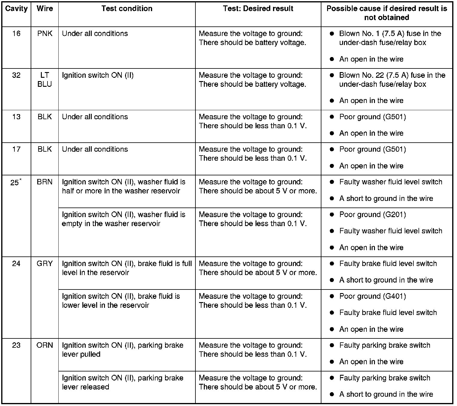 5. Reconnect the 32P connector to the gauge control module, and do these input tests at the following connector.