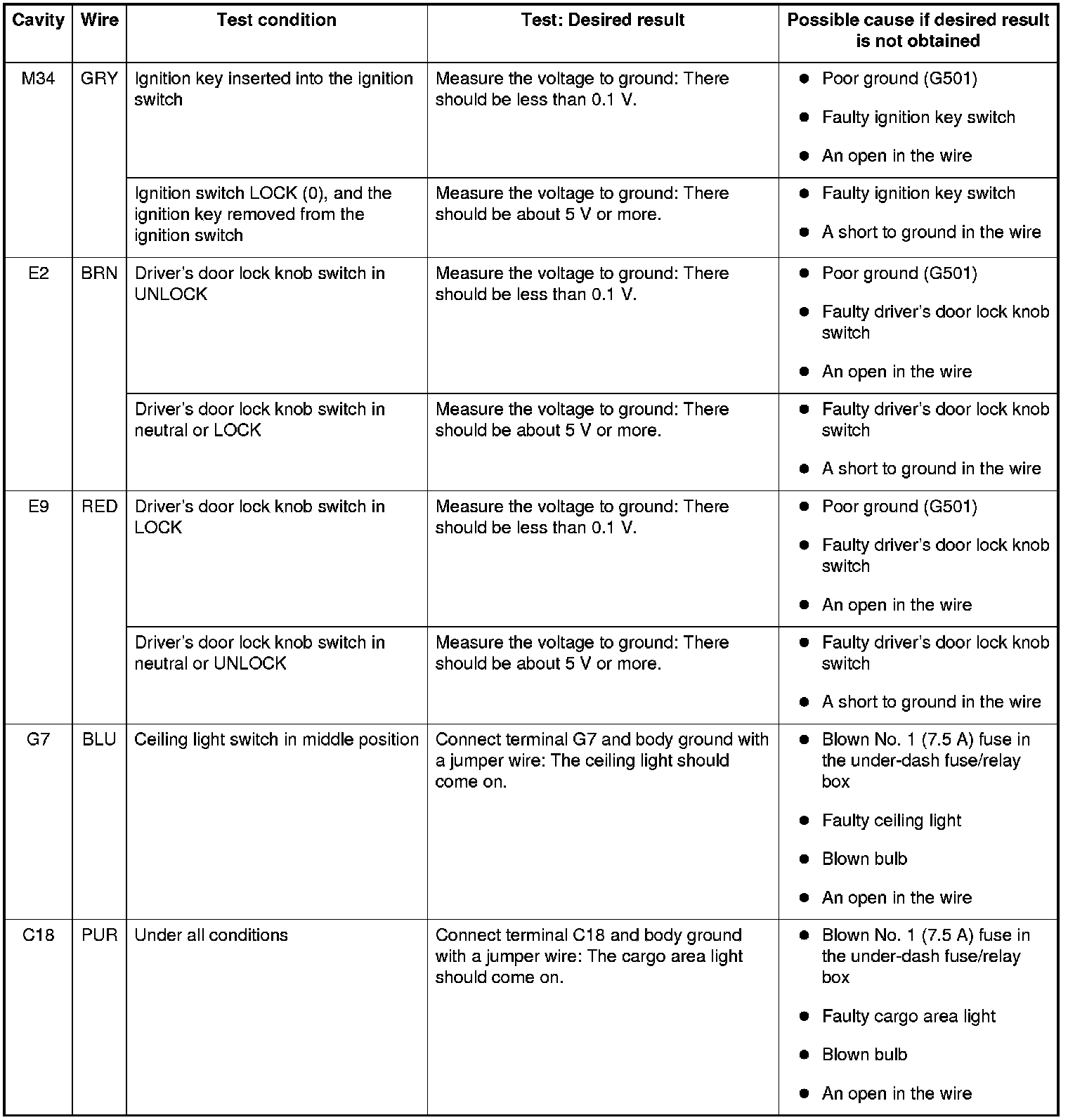 NOTE: Before testing, check for No. 22 (7.5 A) fuse in the under-dash fuse/relay box.