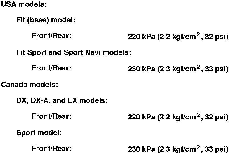 Tire pressure (at cold):