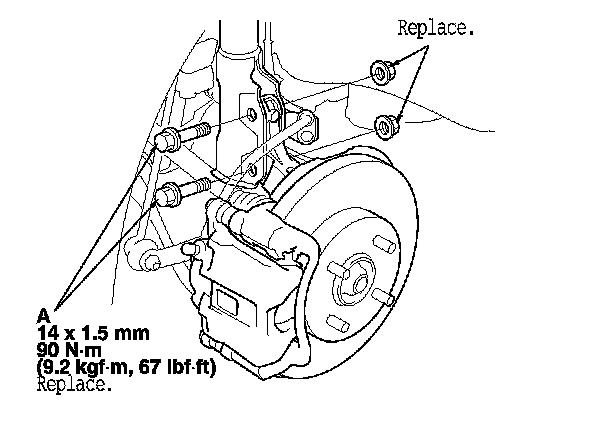10. Replace the damper pinch bolts with the adjusting bolts (A), and adjust the camber angle.