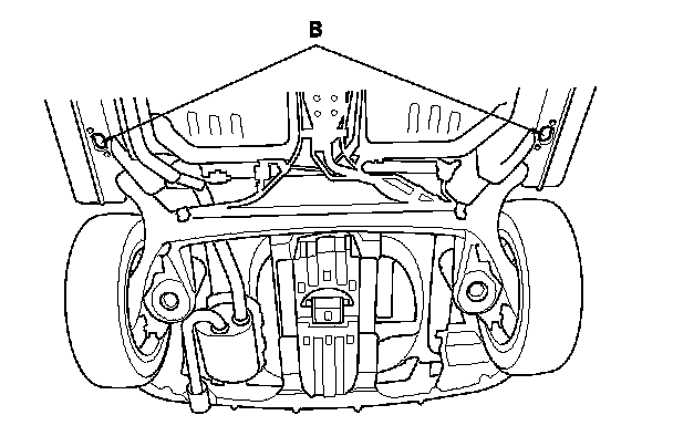 To accommodate flat-bed tow truck equipment, the vehicle is equipped with front tie down hook slots (A) and the rear tie down hook slots (B).
