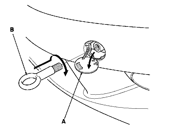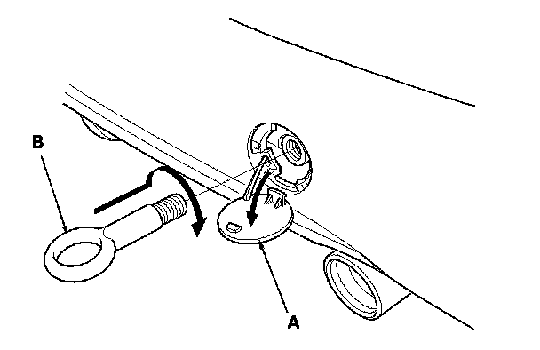3. Screw in the towing hook (B), and tighten it securely by hand.