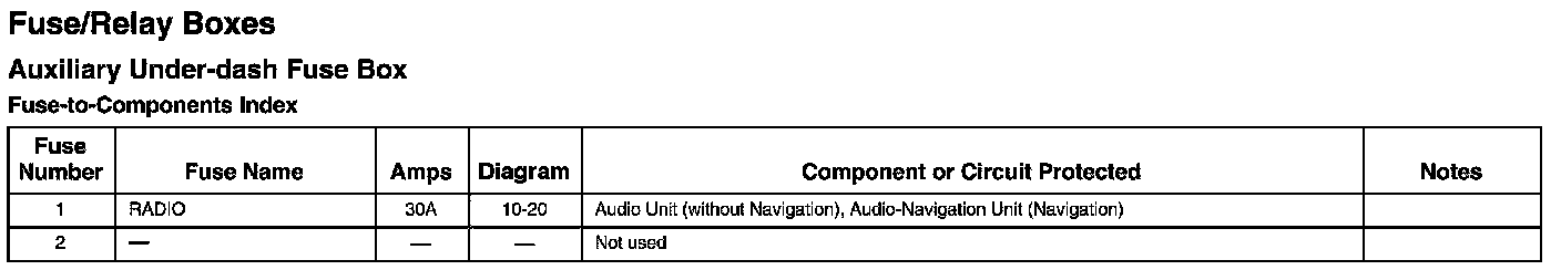 Auxilliary Under-Dash Fuse Box - Fuse-To-Components Index