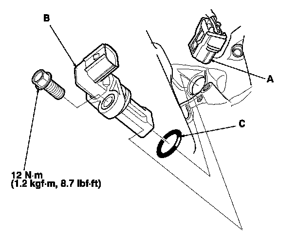 5. Install the parts in the reverse order of removal with a new O-ring (C).