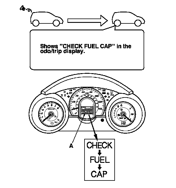 The first time a leak is detected, a CHECK FUEL CAP message appears on the odo/trip display (A). To scroll to another message, press the select/reset button. The CHECK FUEL CAP message appears each time you restart the engine until the system turns the message off. Turn the engine off, then replace or tighten the fuel fill cap until it clicks at least once.