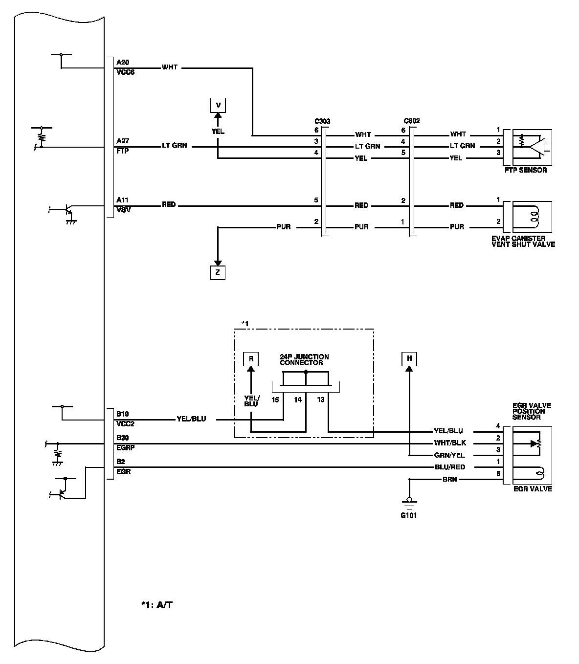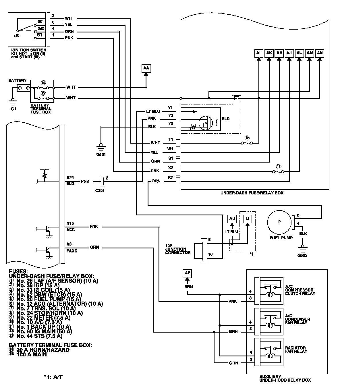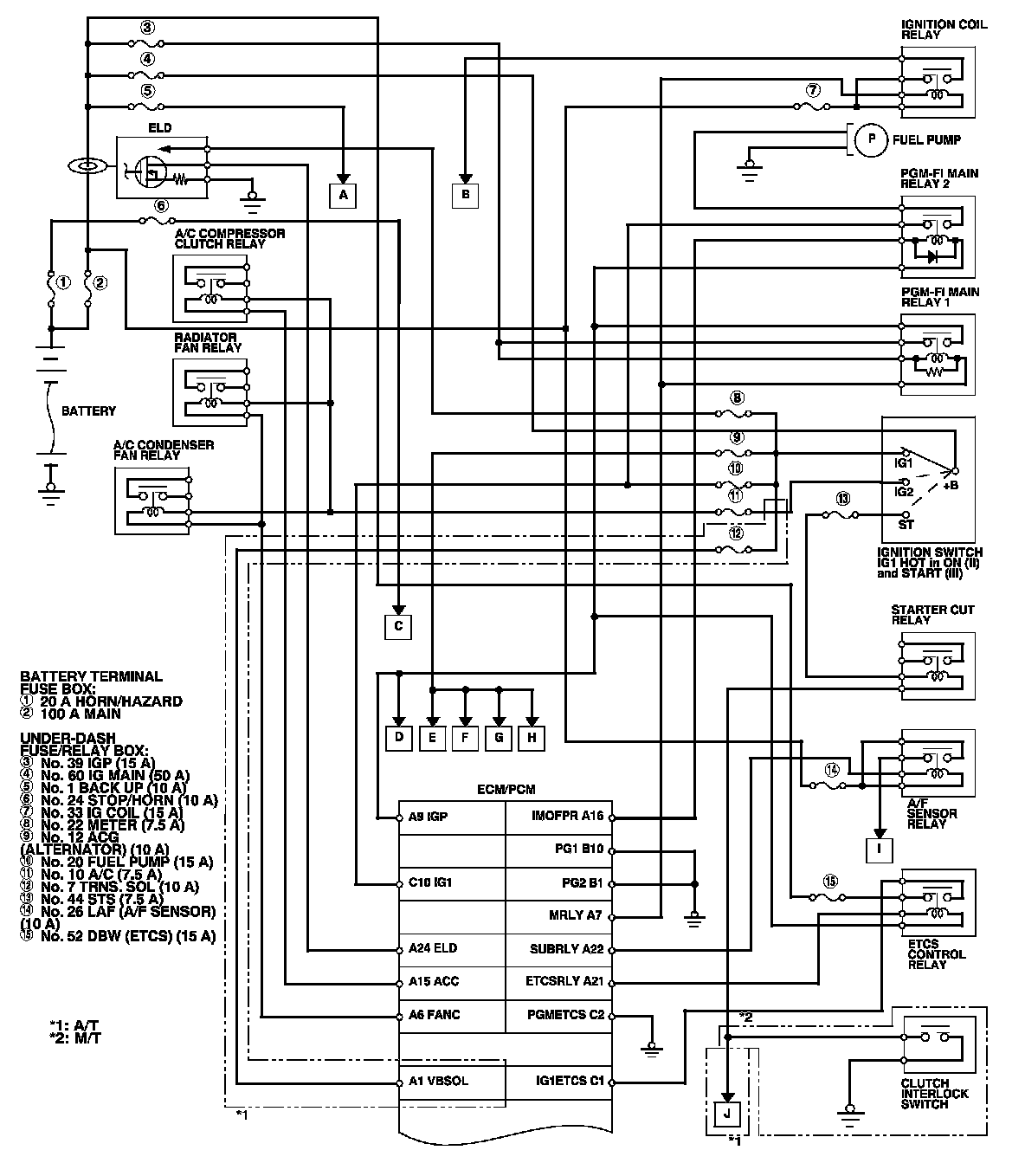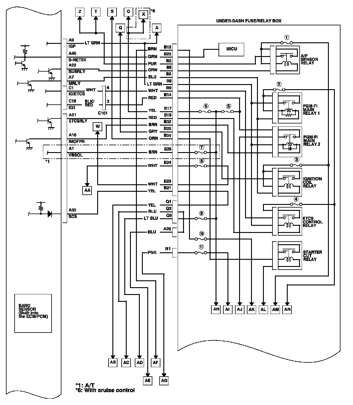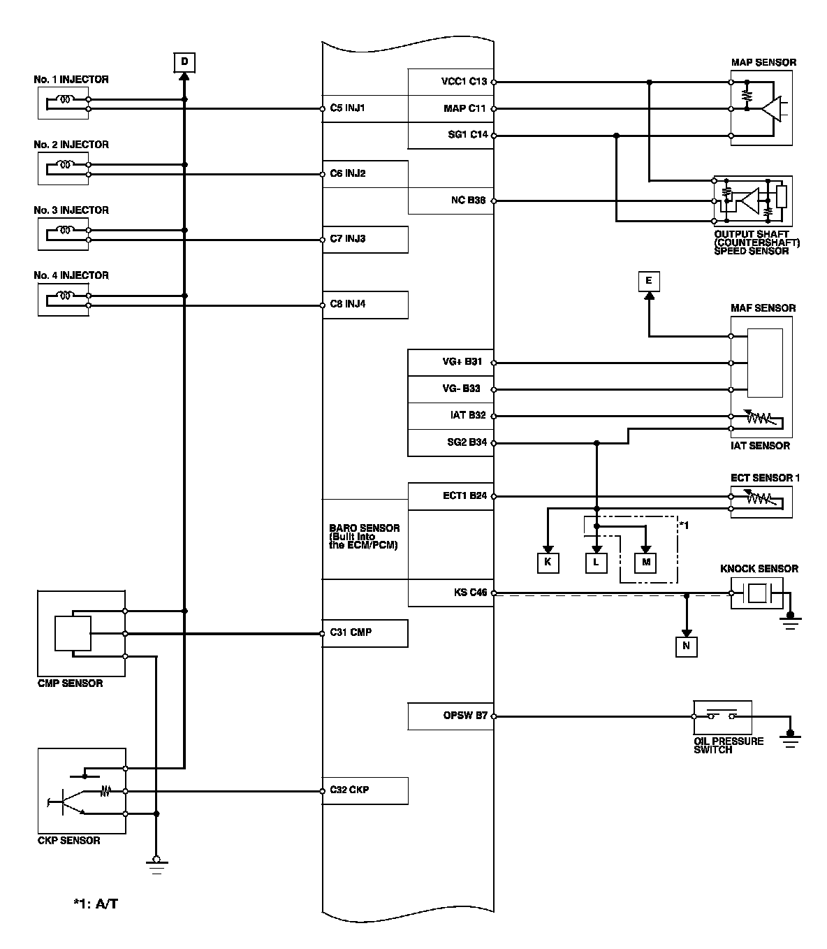 ECM/PCM Inputs and Outputs at Connector A (square) (49P)