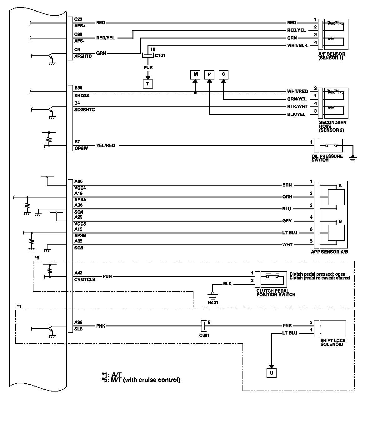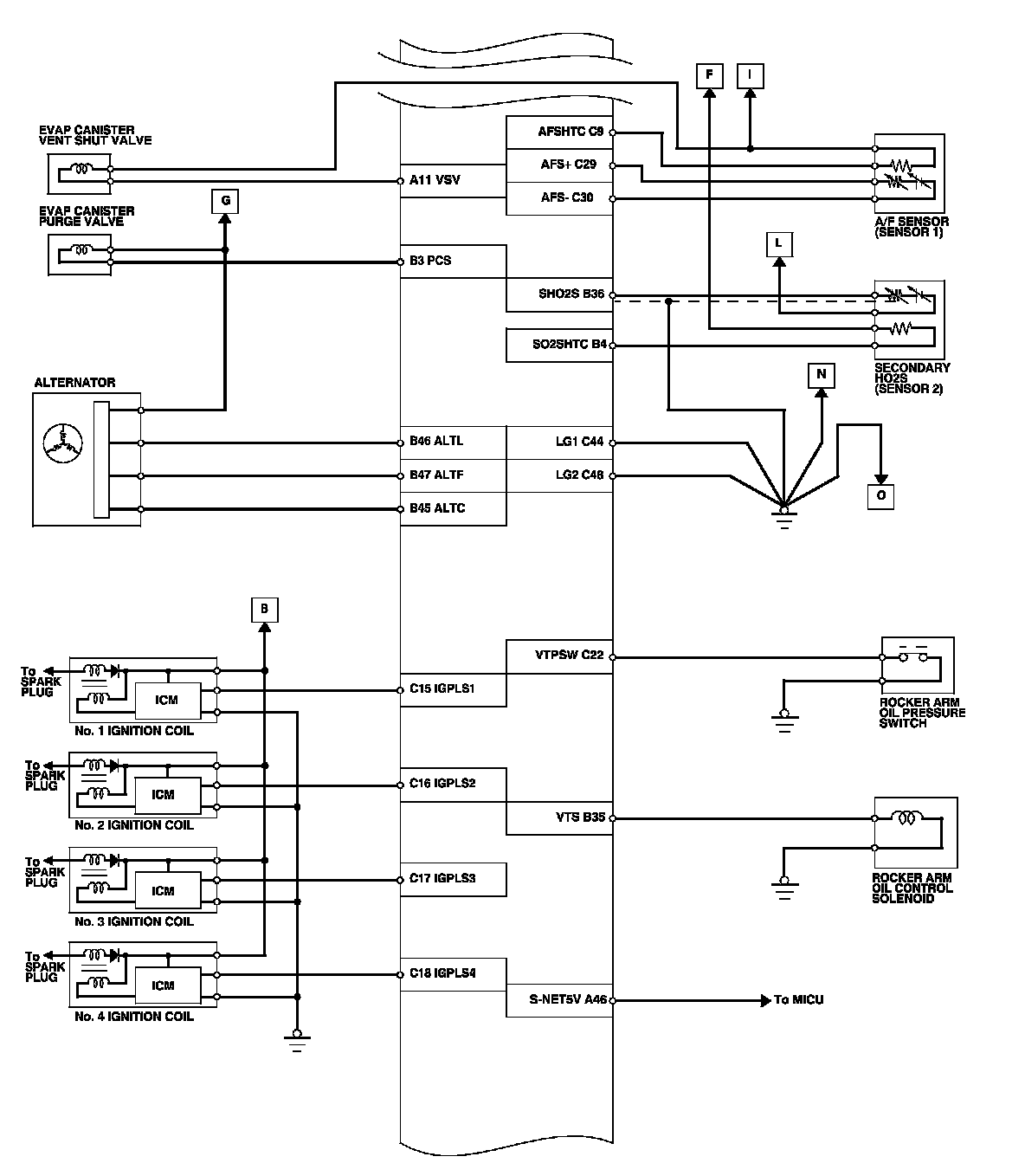 ECM/PCM Inputs and Outputs at Connector C (circle) (49P)
