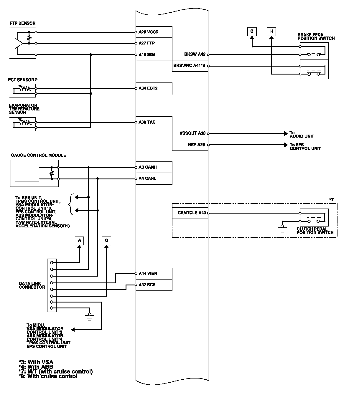 After the ignition switch is turned to ACC (I) or to LOCK (0), the ECM/PCM stays on (about 30 minutes). If an ECM/PCM connector is disconnected during this time, the ECM/PCM may be damaged. To cancel this mode, disconnect the negative cable from the battery or jump the SCS line with the HDS after the ignition switch is turned to ACC (I) or LOCK (0).