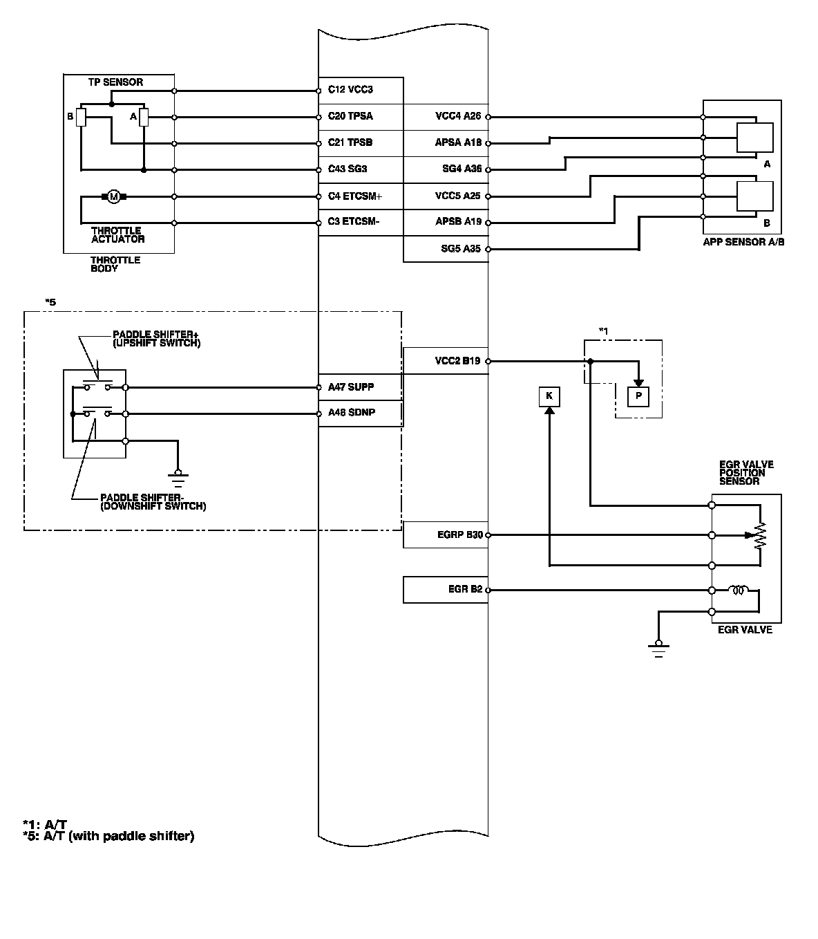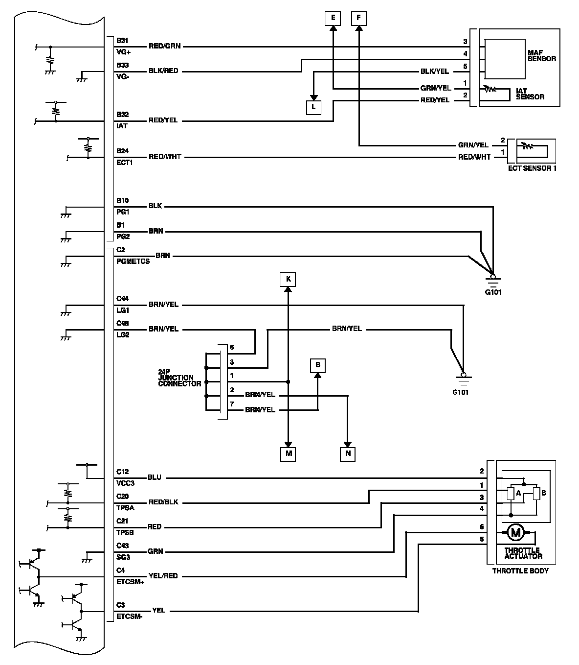 ECM/PCM Inputs and Outputs at Connector B (triangle) (49P)
