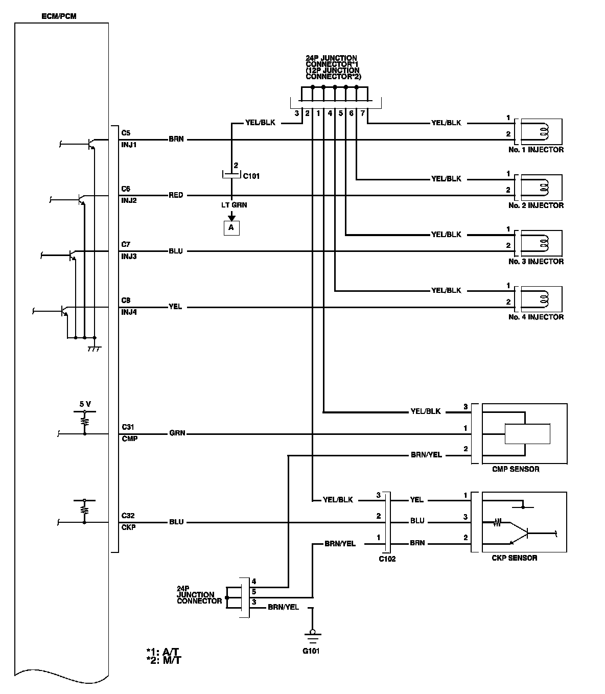 The functions of the fuel and emission control systems are managed by the engine control module (ECM) on vehicles with manual transmissions or the powertrain control module (PCM) on vehicles with automatic transmissions.