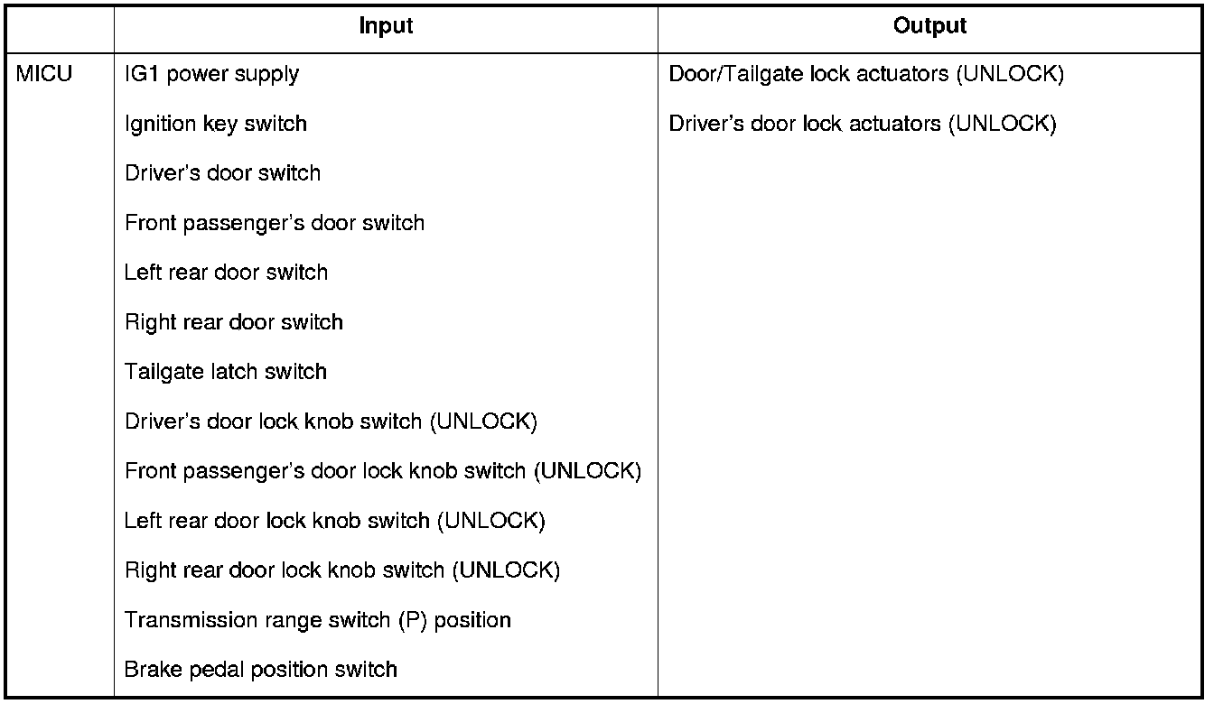 The MICU control of the door lock actuators is based on input signals of each switch and B-CAN signals.