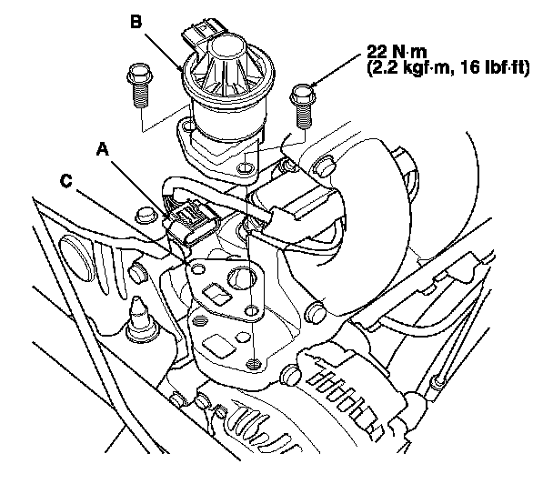 Install the parts in the reverse order of removal with a new gasket (C).