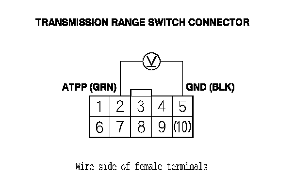 21. Measure the voltage between transmission range switch connector terminals No. 2 and No. 5.