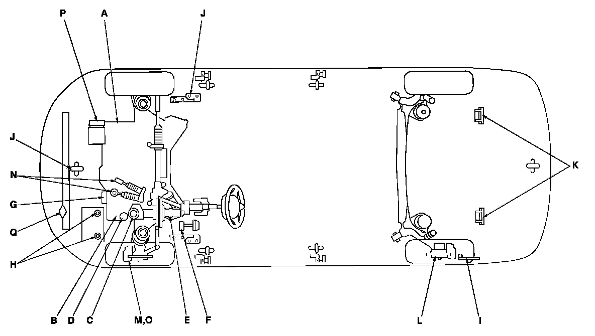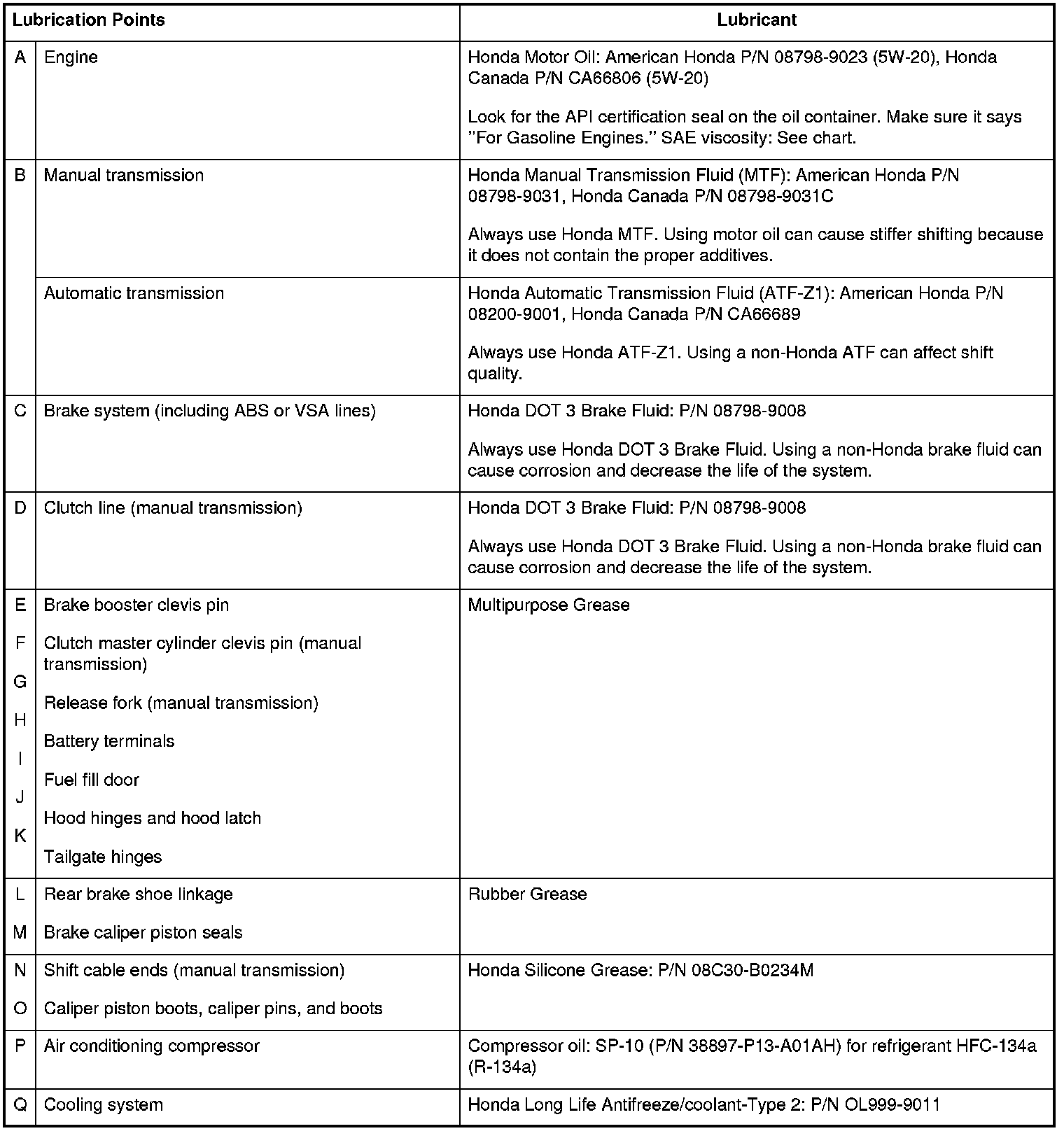 - Lubricate the following areas using the recommended lubricants and fluids.