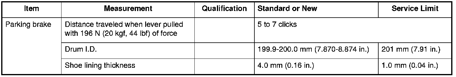 Parking Brake Specifications