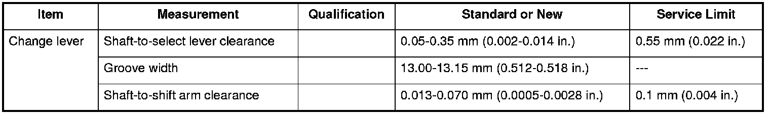 Change Lever Specifications (M/T)