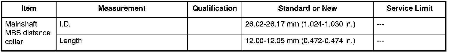 Mainshaft MBS Distance Collar Specifications (M/T)