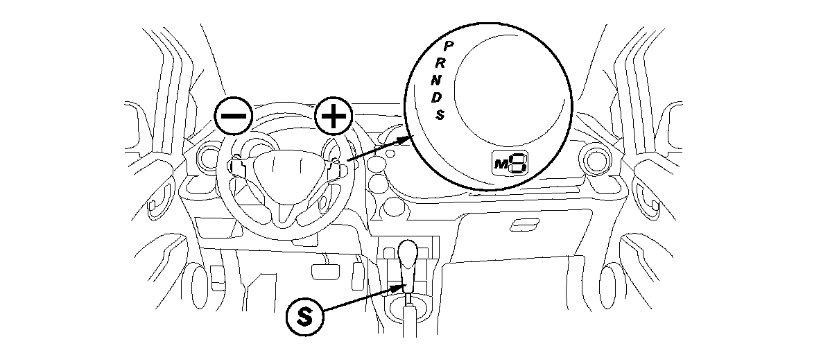Either mode can be activated by pulling the paddle shifter + (upshift switch) or paddle shifter - (downshift switch) while driving with the shift lever in D or S.
