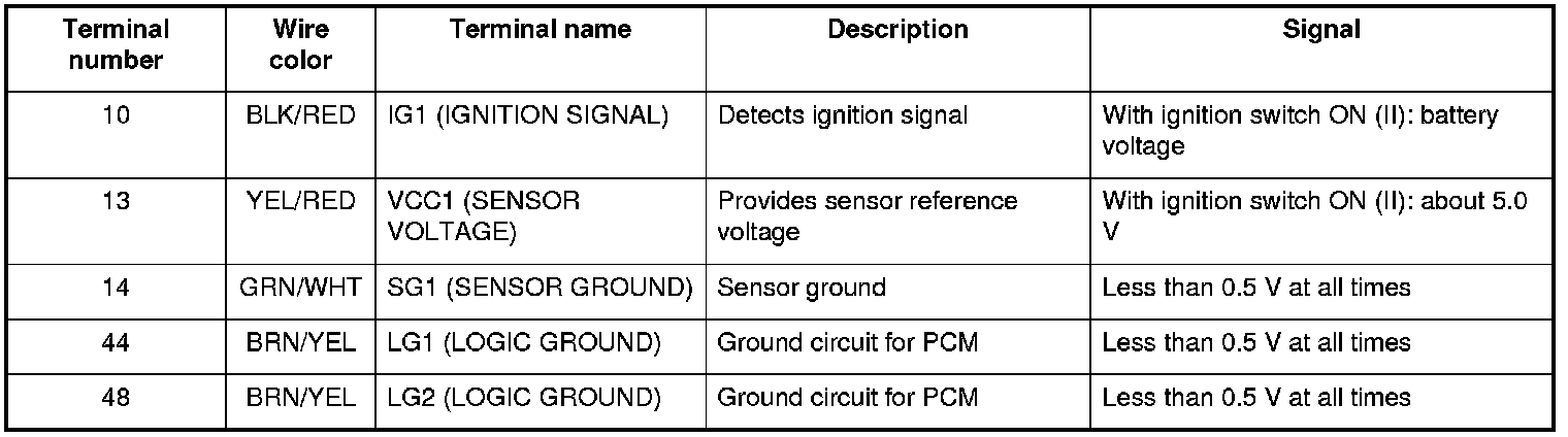 PCM A/T Control System Inputs and Outputs (cont'd)