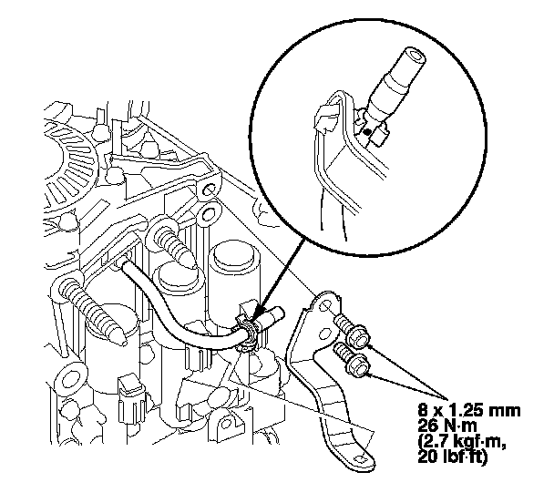 43. Secure the ATF outlet line with the bracket bolt.