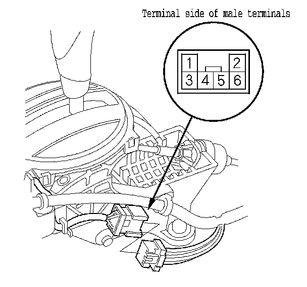 4. Shift out of P, and check for continuity between connector terminals No. 4 and No. 5. There should be continuity.