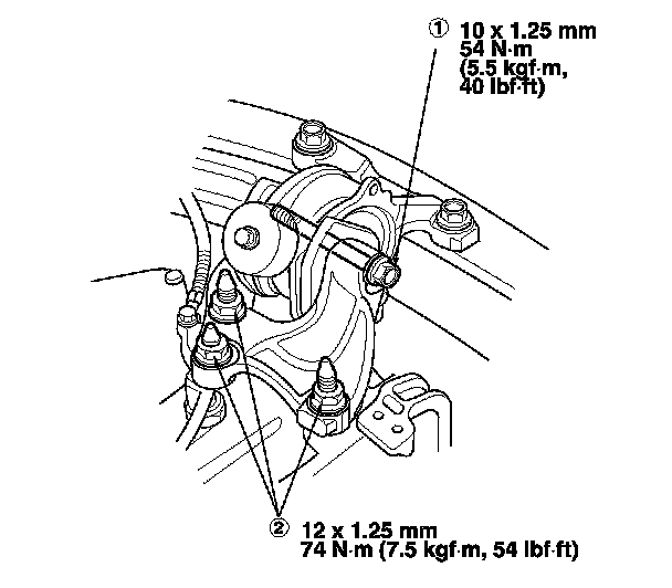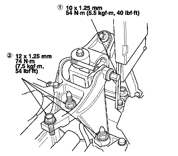 16. Tighten the torque rod mounting bolt and nut in the numbered sequence shown.