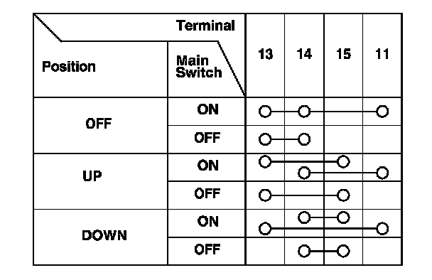 The driver's switch is combined with the control unit so you cannot isolate the switch to test it. Instead, run the master switch input test procedures. Power Window Master Switch Input Test If the tests are normal, the driver's switch must be faulty. Replace the switch.