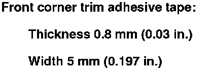 10. Apply glass primer to the inside face of the corner glass, and let the primer dry, then attach the front corner trim (A) with adhesive tape to the front corner glass (B) as shown.