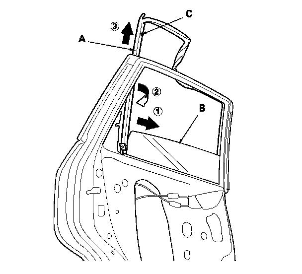-2 Twist the channel to pass it through the gap between the door panel and the rear sash.